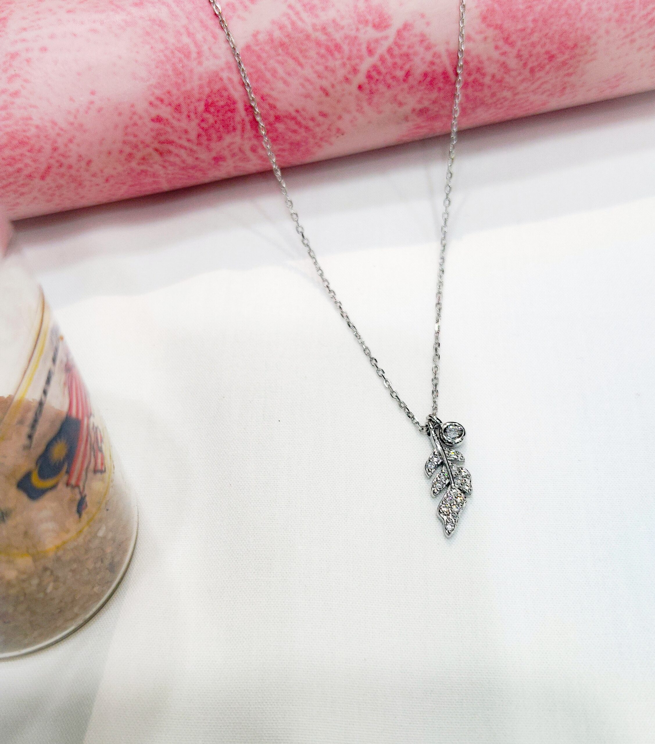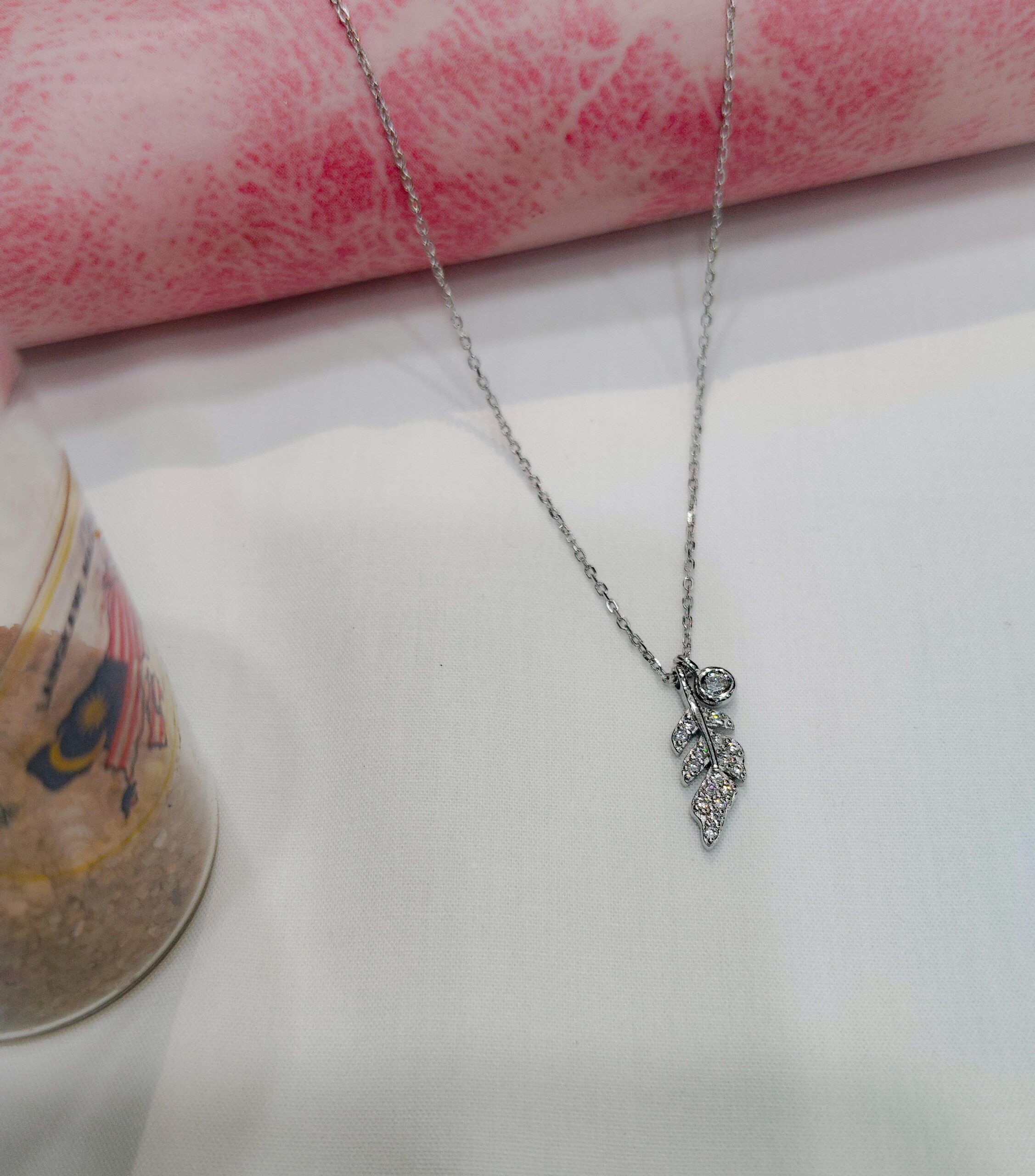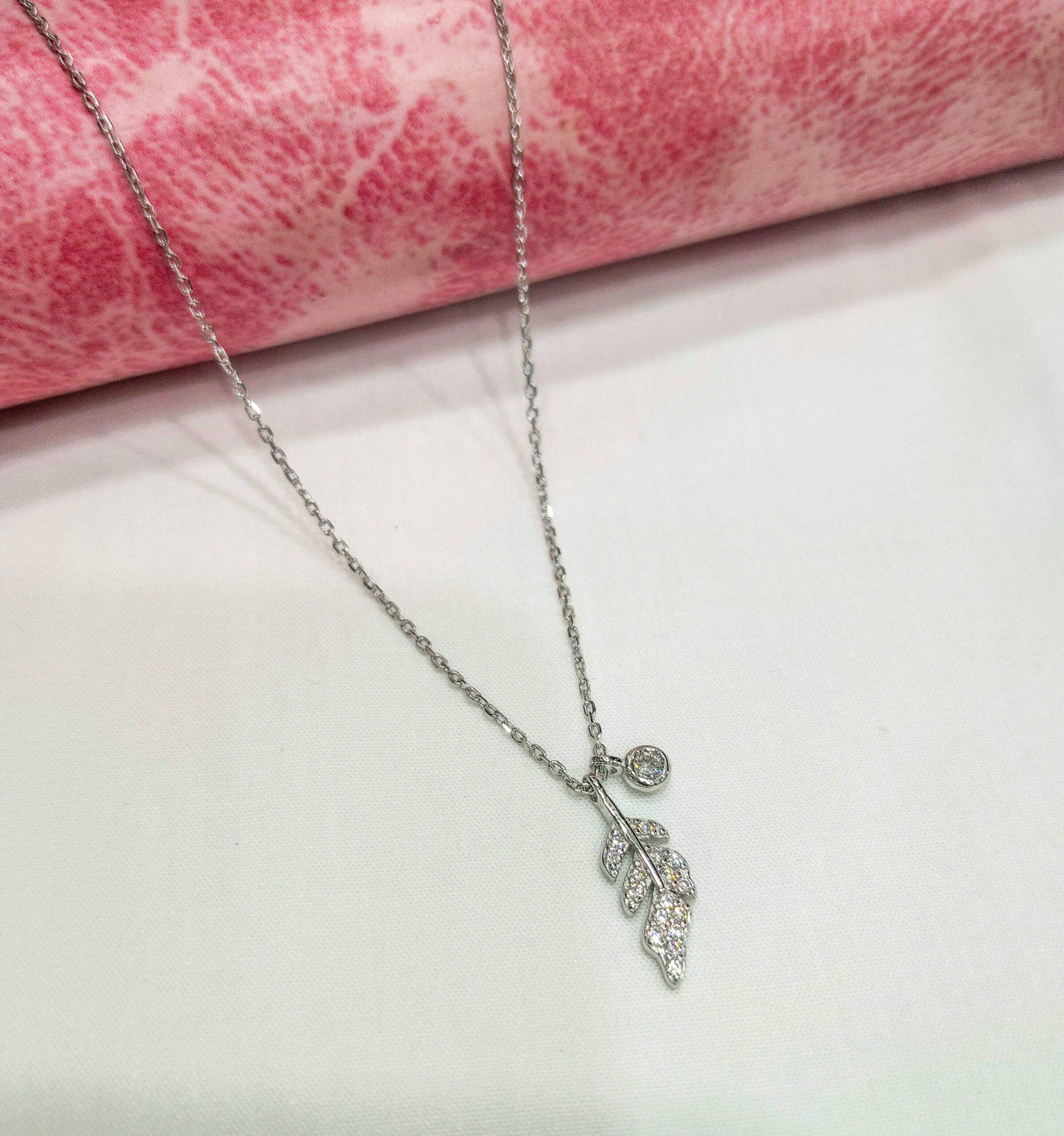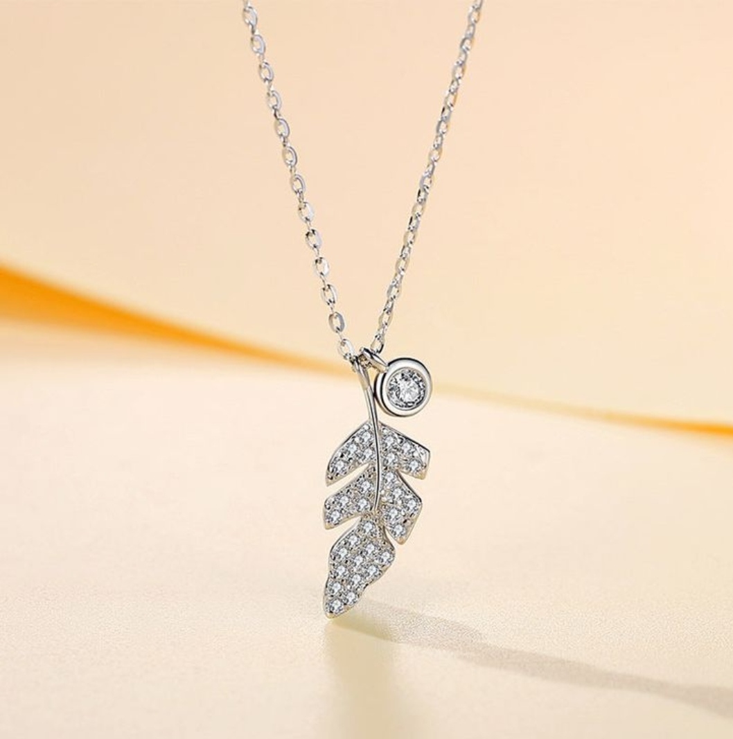 Be the first to review “Silver Leaf/Feather Pendant Necklace Crystal Cubic Zirconia”
