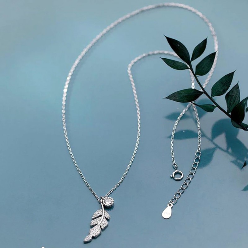 Elegant Feather/Leaf Necklace – 925 Sterling Silver